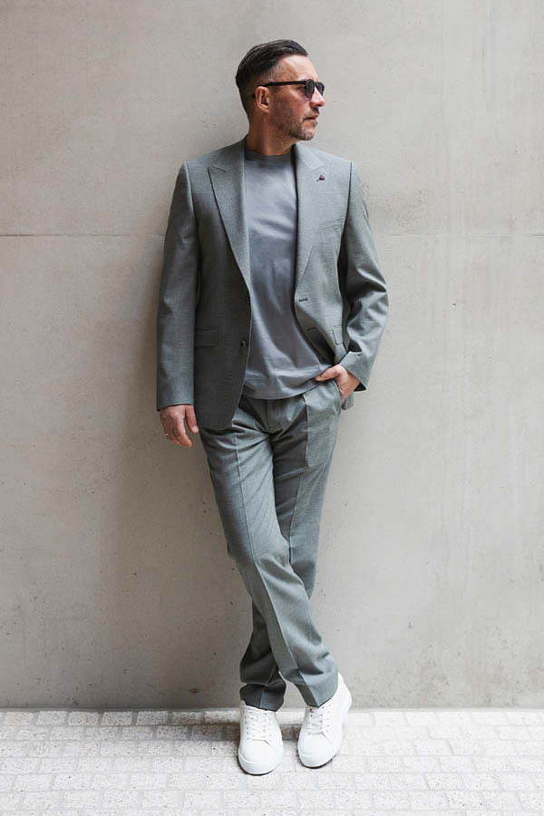 Ein konsequenter Denim-Look, der auf Monochromie und Volumen setzt. Oversized geschnittene Pieces treffen auf farbigen Denim. Durch gezieltes Layering – etwa ein leichtes Denim-Jacket über einer coolen Weste – entsteht Power. Das Ergebnis: ein cleaner, selbstbewusster Summer-Style mit Streetwear-Attitüde.